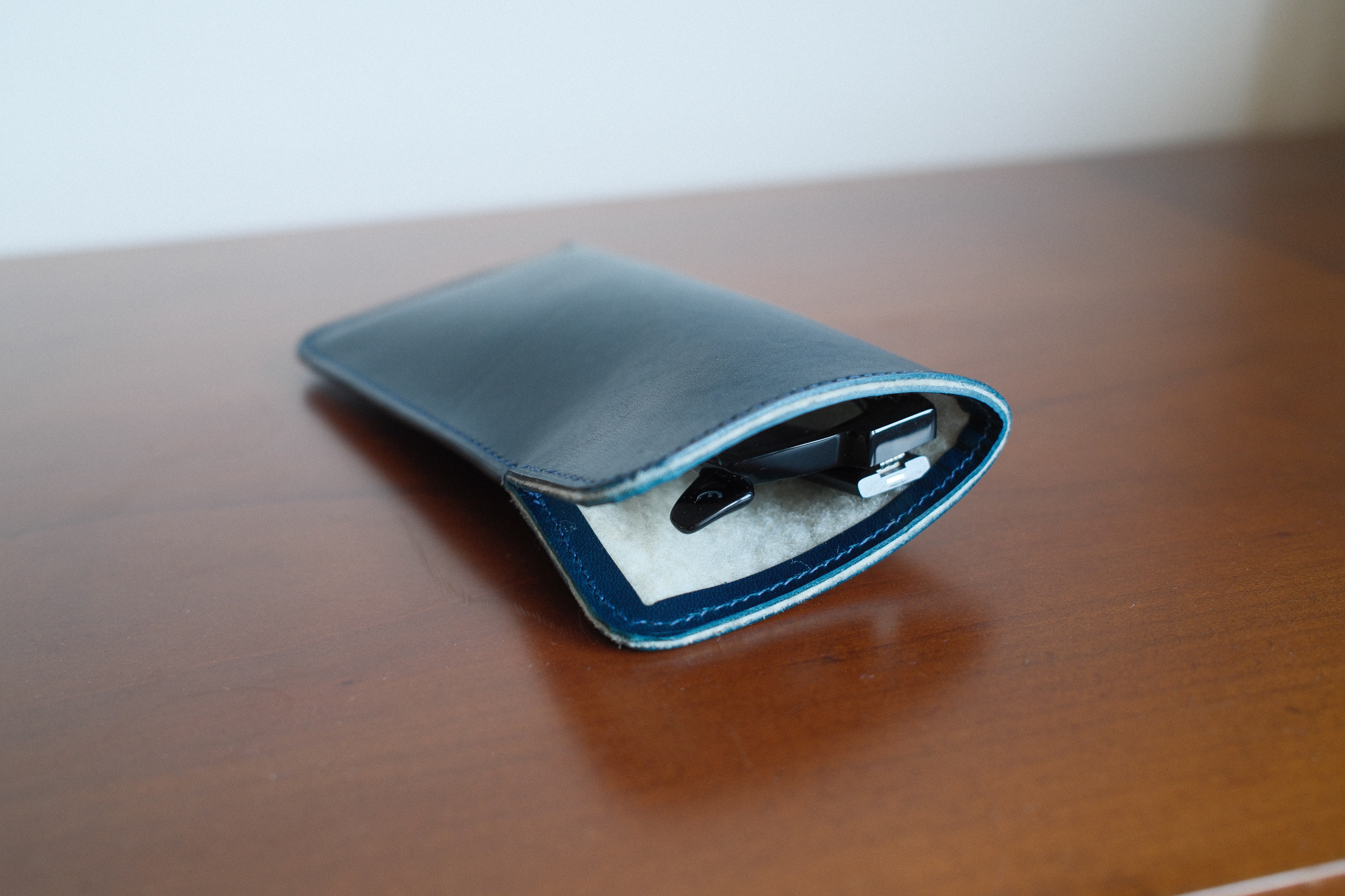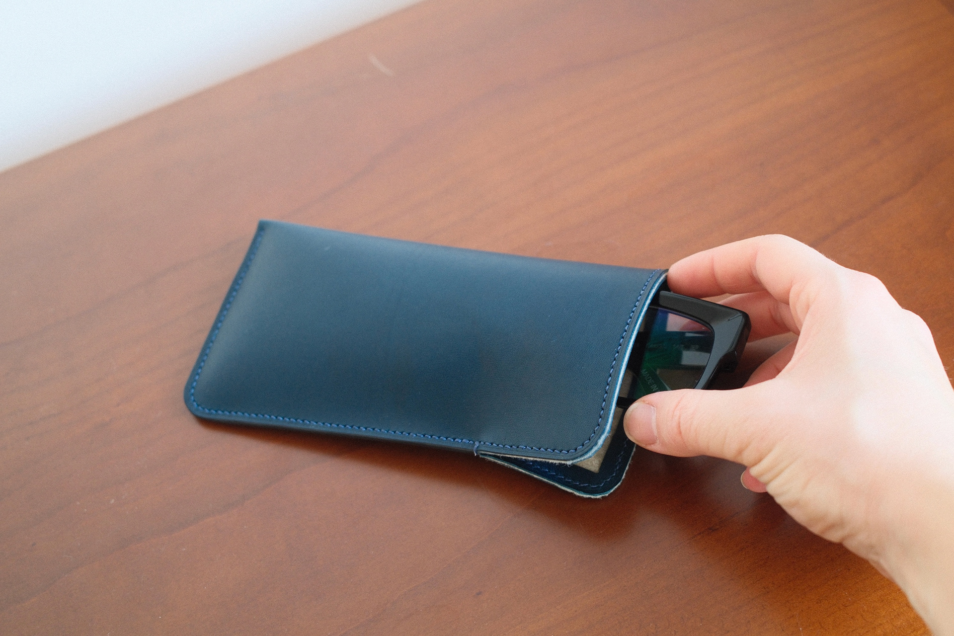 minimalistické pouzdro na brýle vyrobené z kombinace přírodních materiálů: