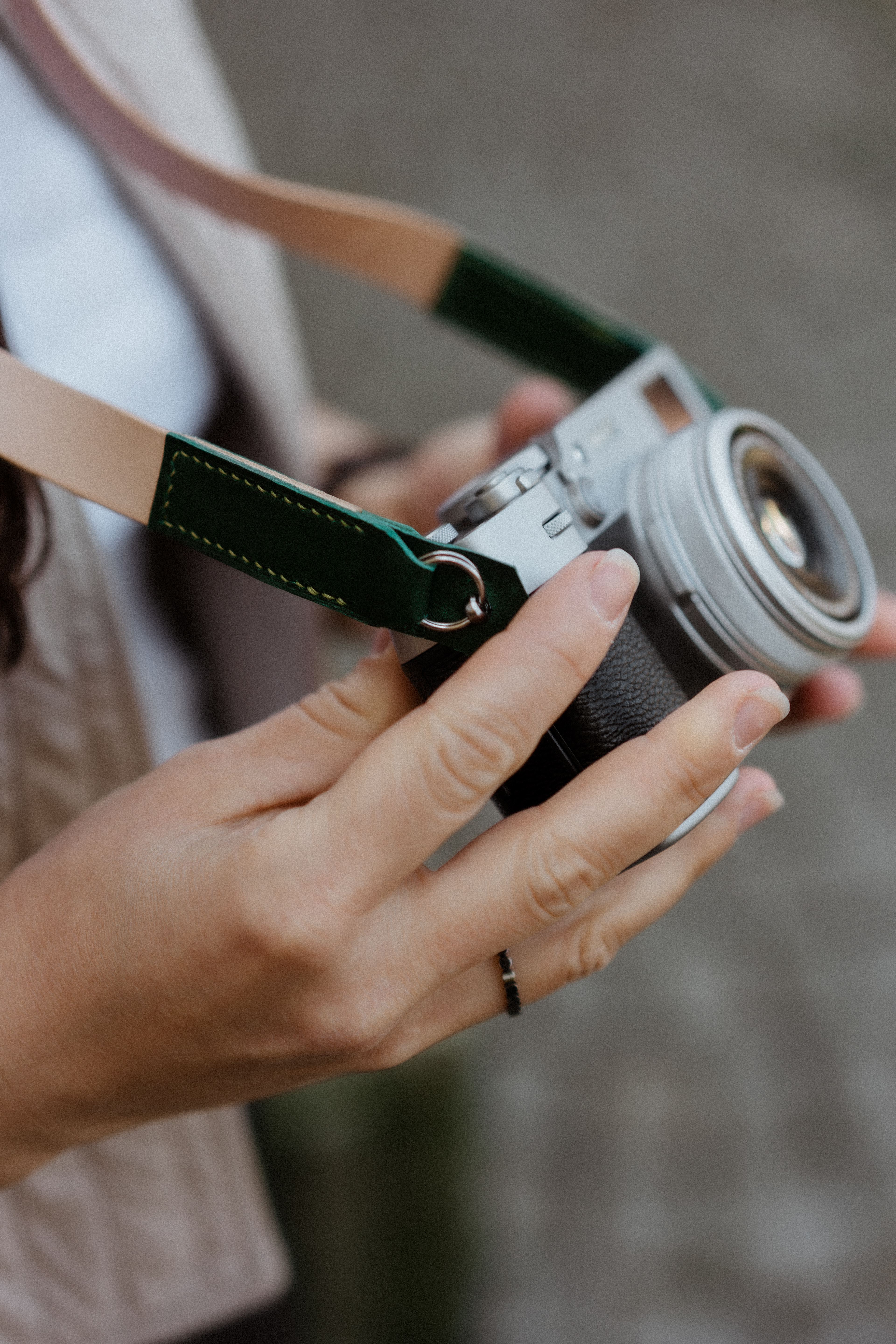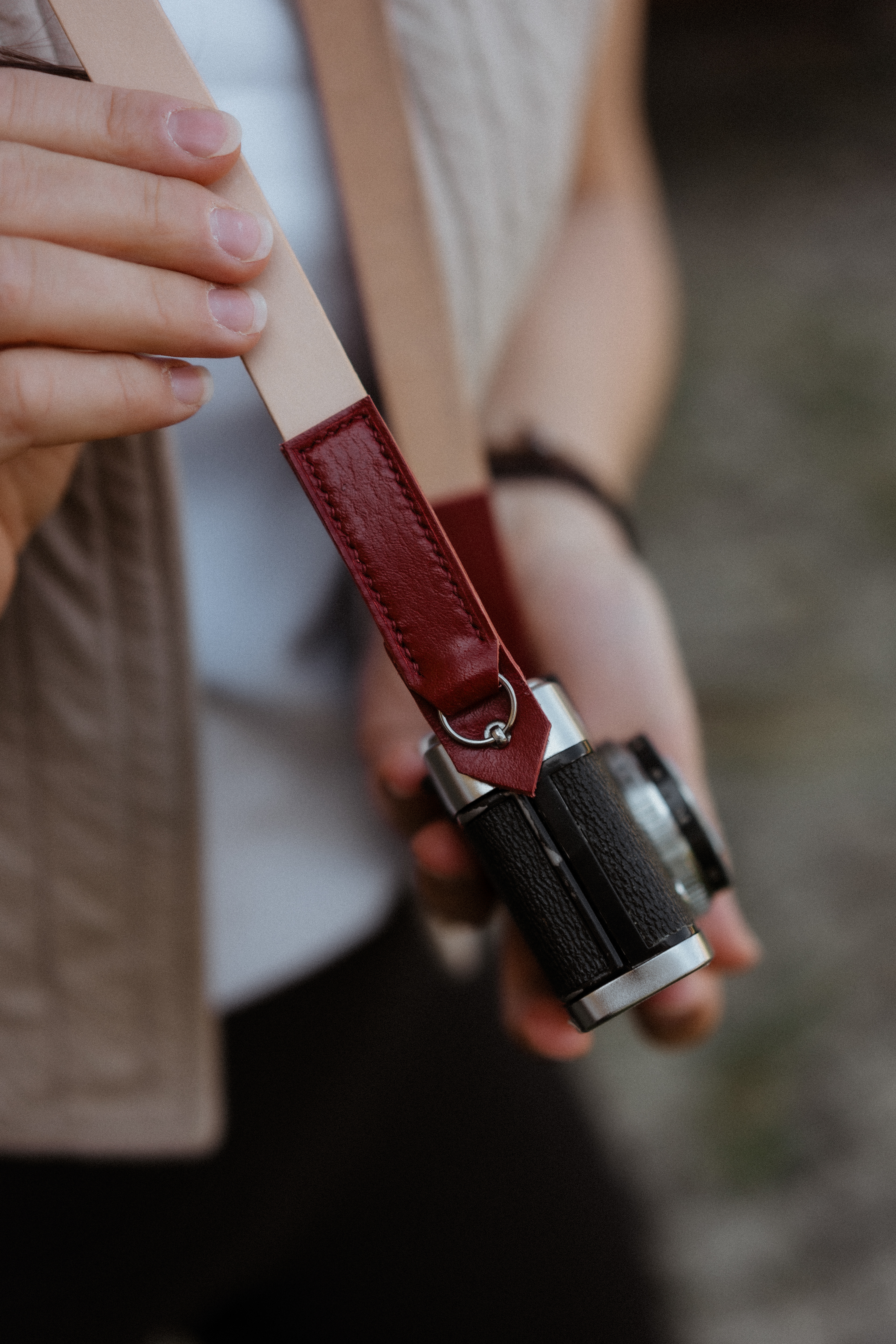 Kožený popruh na fotoaparát byl vyvinut ve spolupráci s fotografickými specialisty v Praze. Popruh se skvěle hodí k vintage fotoaparátům, jako je OLYMPUS-PEN, stejně tak i k moderním modelům, například Fujifilm X100VI.